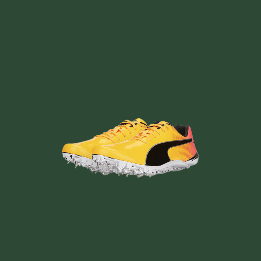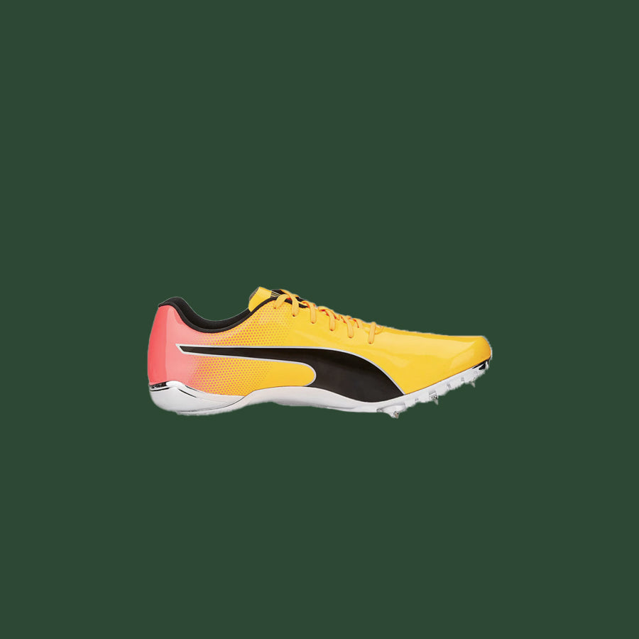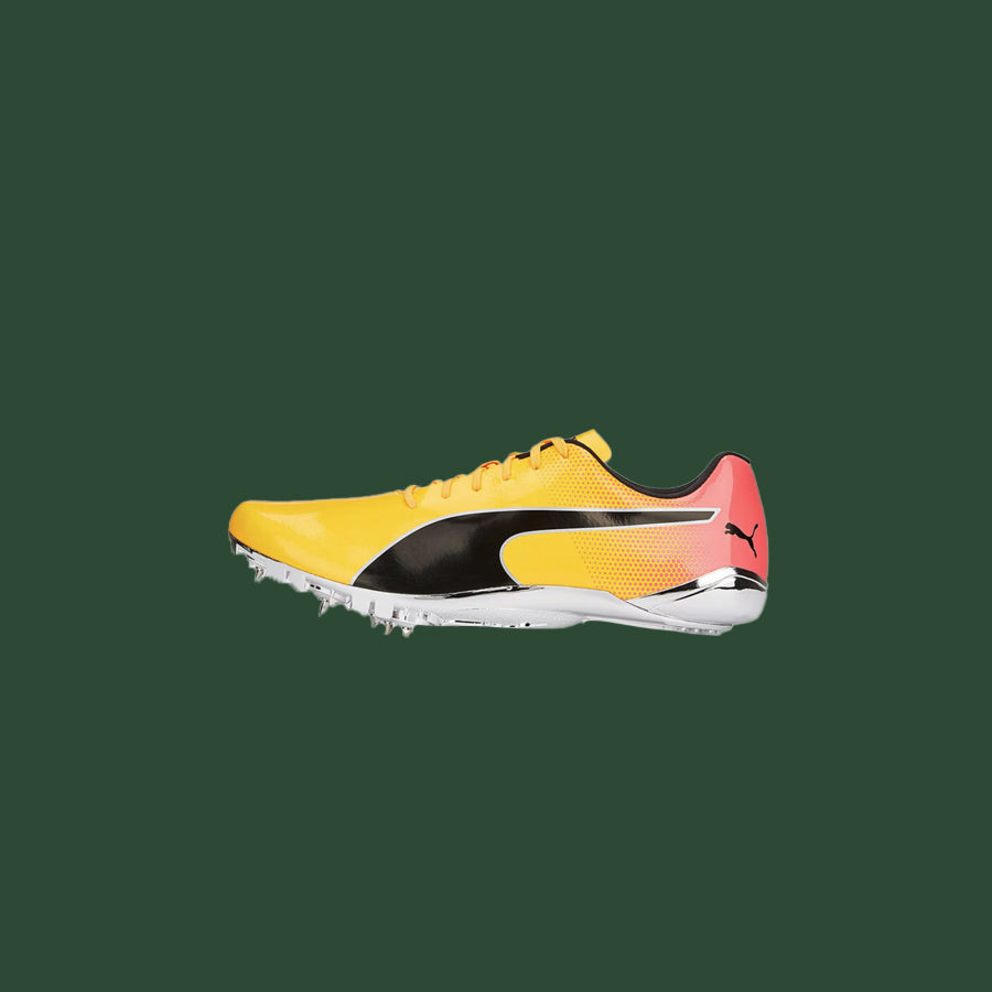 You thirst for speed? Reach your personal best and beyond with the PUMA evoSPEED Electric. These incredible shoes were designed for track and field: The aerodynamic synthetic upper fits your foot like a glove so you can focus on your fitness, while the full Pebax Plate® with eight spikes on the outsole provides maximum traction on the track. Accelerate your sprint in style.