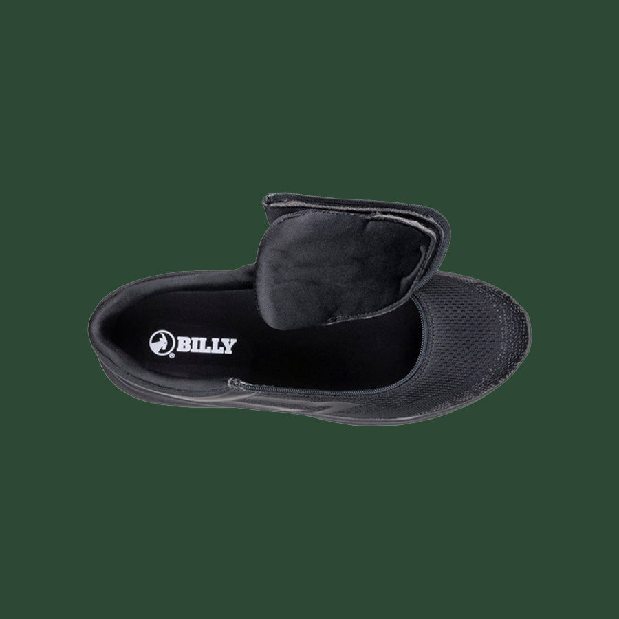 No matter how you get around, you will be moving with style in these Men's Black to the Floor BILLY Sport Inclusion Too Athletic Sneakers. These kicks have a padded collar, comfortable insole, and incorporate our innovative short-wrap zipper configuration that makes them easy to put on and wear all day.